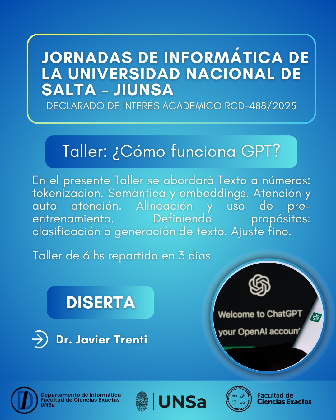 JORNADAS DE INFORMÁTICA DE LA UNSA En el marco de las Jornadas de Informática de la UNSa- JIUNSA, continuamos compartiendo algunos de los talleres que se desarrollarán durante este importante evento. Más Información en: www.ji.unsa.edu.ar...